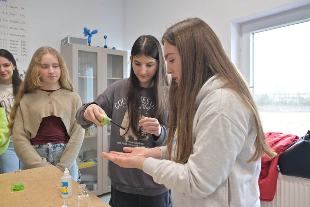 Nxënëset dhe nxënësit u frymëzuan të eksplorojnë fushat STEM (shkencë, teknologji, inxhinieri dhe matematikë), përmes eksperimenteve praktike nga kimia dhe fizika, të demonstruara nga mësimdhënëset Florie Shala dhe Ardiana Gashi, të cilat gjithashtu folën për rëndësinë e kimisë dhe fizikës në shkencë.